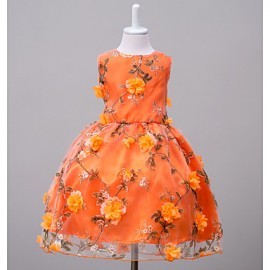 Girl's Going out Floral Dress,Polyester Summer Orange / Pink