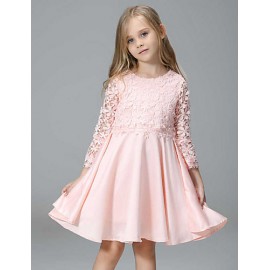 SpecificationKids ApparelDress,Clothing StyleLace,GenderGirl,OccasionCasual/Daily,SeasonFall,Spring,PatternPatchwork,Look After MeMachine wash,Wash with similar colors,Wash separately,ElasticityInelastic,FabricPolyester,Filling MaterialWithout Filling Material,DetailsLined,Sleeve Length3/4 Sleeve,Clothing Length (cm)100:53,110:56,120:59,130:62,140:..