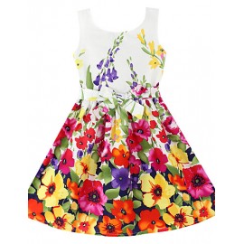 Girl's Cotton Summer Sleeveless Floral Print Pattern Print Dress