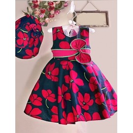 Girl's Flower Print Sleeveless Dress,Cotton Summer / Spring Red Flower Knee-length Causal Holiday Party Girls Fashion (Hat incude)